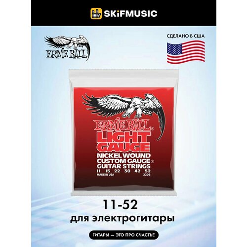 Струны для электрогитары, комплект из 6 струн Light, Ernie Ball 2208 Nickel wound 11-52 обеспечивают яркий, но в то же время мягкий и сбалансированный звук.