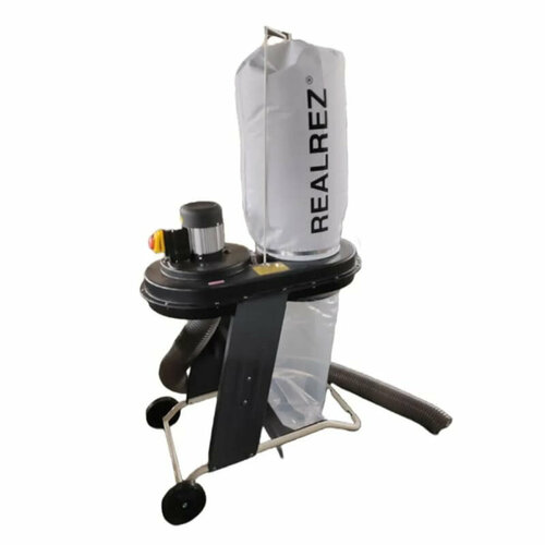 Вытяжка REALREZ FM 200 — это надежное оборудование с простым обслуживанием и удобной сменой мешка. Мобильность станку обеспечивают ролики для передвижения.