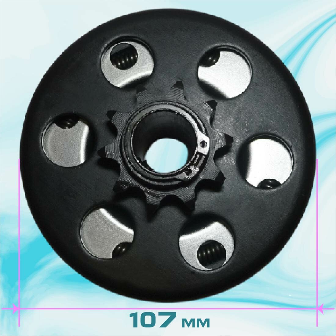 Компактные размеры: сцепление имеет компактные размеры (длина, ширина и высота составляют 107 мм, а диаметр - 107 мм), что позволяет устанавливать его на различные модели мотоциклов и квадроциклов.