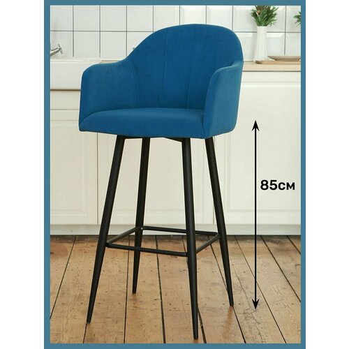 Барный стул для кухни «Токио» мягкий со спинкой синий велюр, 85 см: сравнение цен, характеристики, фото, актуальное наличие и цены.