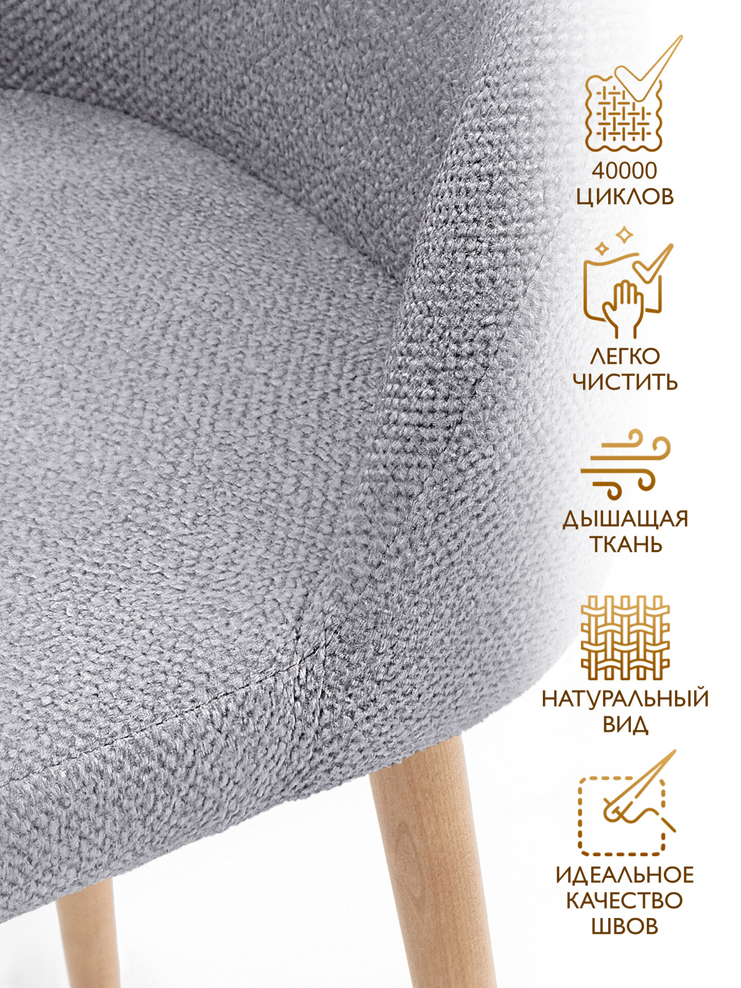 Стул для кухни Lite L02, велюр с эффектом букле светло-серый, опора натуральная: сравнение цен, характеристики, фото, актуальное наличие и цены.