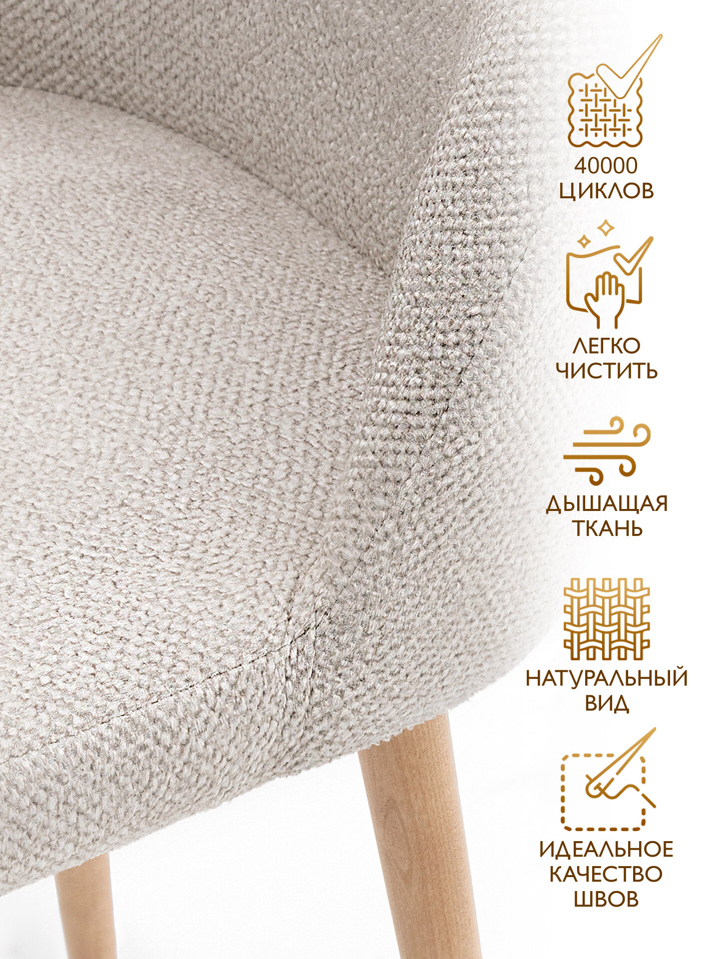 Стул для кухни Lite L02, велюр с эффектом букле светло-бежевый, опора натуральная: сравнение цен, характеристики, фото, актуальное наличие и цены.