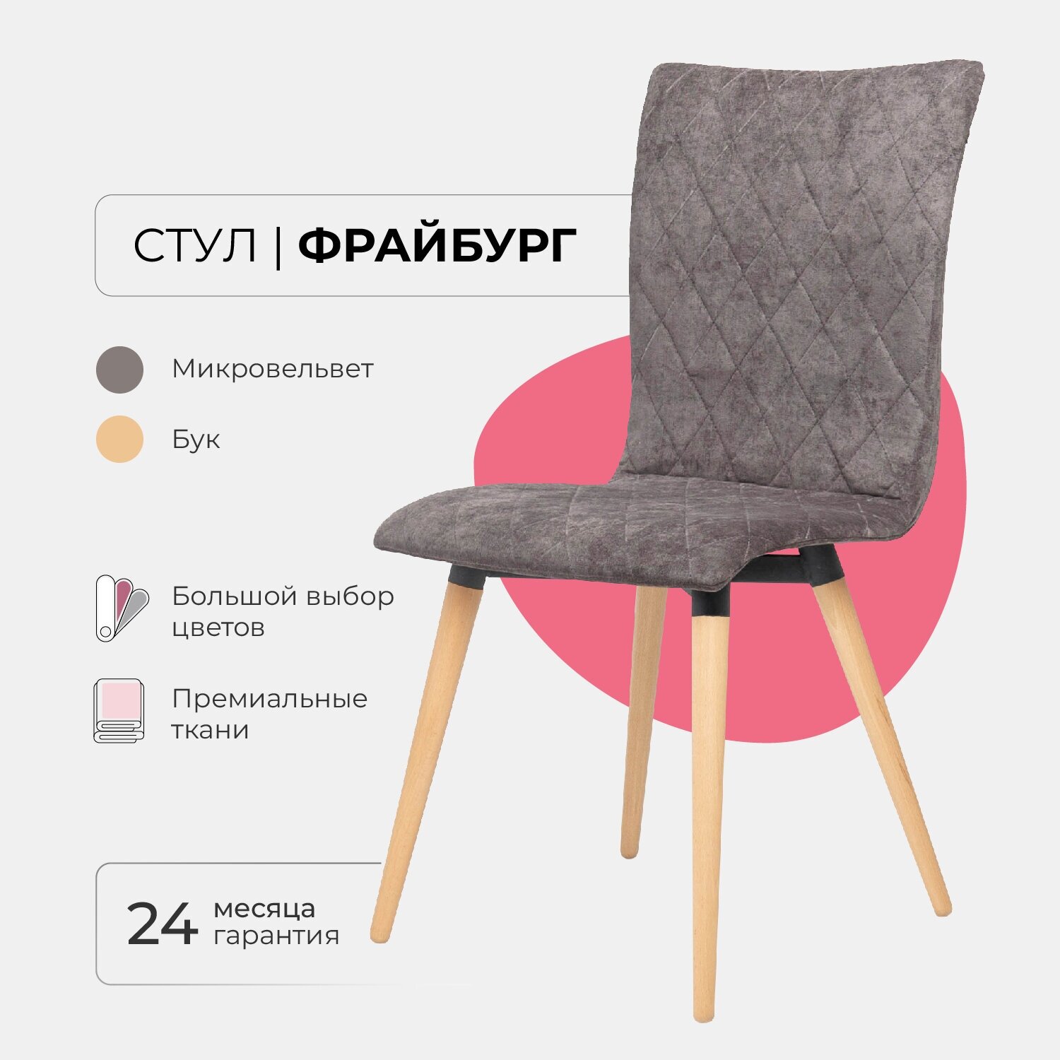 Стул для кухни гостиной дома дачи кафе ресторанов Фрайбург для кухни, для гостиной. Микровельвет серый, массив дерева — бук/бесцветный лак: сравнение цен, характеристики, фото, актуальное наличие и цены.
