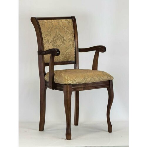 Стул кухонный с подлокотниками с мягкими спинкой и сиденьем — красивый, комфортный, удобный и практичный. Каркас изготовлен из массива дерева березы, что обеспечивает ему повышенную прочность и это несомненное преимущество. Кресло в комнату обито износостойким жаккардом. Отличительная особенность - вензельный рисунок. Не деформируется и не мнётся, хорошая упругость на растяжение. Тактильная поверхность надолго сохранит свой первоначальное состояние и эксплуатационные характеристики. Стульчик имеет правильную посадку, благодаря эргономичной форме вы будете получать сплошное удовольствие от использования. Достоинство модели - экологичность и долговечность. Основательные, надёжные стулья для кухни и гостиной гармоничны в любом интерьере. Идеально подойдёт для спальни, столовой, бара, ресторана и любого другого помещения. Замечательный подарок близким друзьям родителям на новоселье свадьбу после ремонта годовщину без повода. Хорошо упакован для транспортировки. Поставляется собранным.