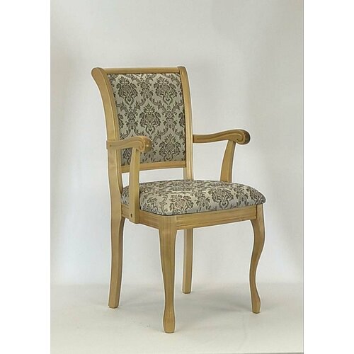 Стул кухонный с подлокотниками с мягкими спинкой и сиденьем — красивый, комфортный, удобный и практичный. Каркас изготовлен из массива дерева березы, что обеспечивает ему повышенную прочность и это несомненное преимущество. Кресло в комнату обито износостойким жаккардом. Отличительная особенность - вензельный рисунок. Не деформируется и не мнётся, хорошая упругость на растяжение. Тактильная поверхность надолго сохранит свой первоначальное состояние и эксплуатационные характеристики. Стульчик имеет правильную посадку, благодаря эргономичной форме вы будете получать сплошное удовольствие от использования. Достоинство модели - экологичность и долговечность. Основательные, надёжные стулья для кухни и гостиной гармоничны в любом интерьере. Идеально подойдёт для спальни, столовой, бара, ресторана и любого другого помещения. Замечательный подарок близким друзьям родителям на новоселье свадьбу после ремонта годовщину без повода. Хорошо упакован для транспортировки. Поставляется собранным.