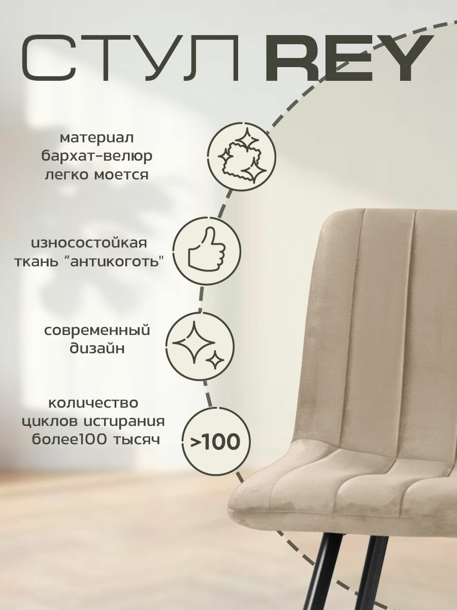 Стул для кухни, мягкий со спинкой, обеденный, для гостиной мягкий велюр Rey 1шт: сравнение цен, характеристики, фото, актуальное наличие и цены.