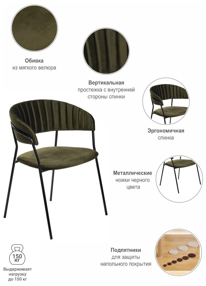 Стул для кухни мягкий велюр со спинкой и подлокотниками Turin зеленый с черными ножками: сравнение цен, характеристики, фото, актуальное наличие и цены.