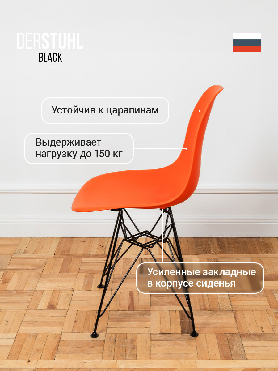 Купить Стул для кухни пластиковый со спинкой обеденный 1 шт, оранжевый с доставкой по всей России.