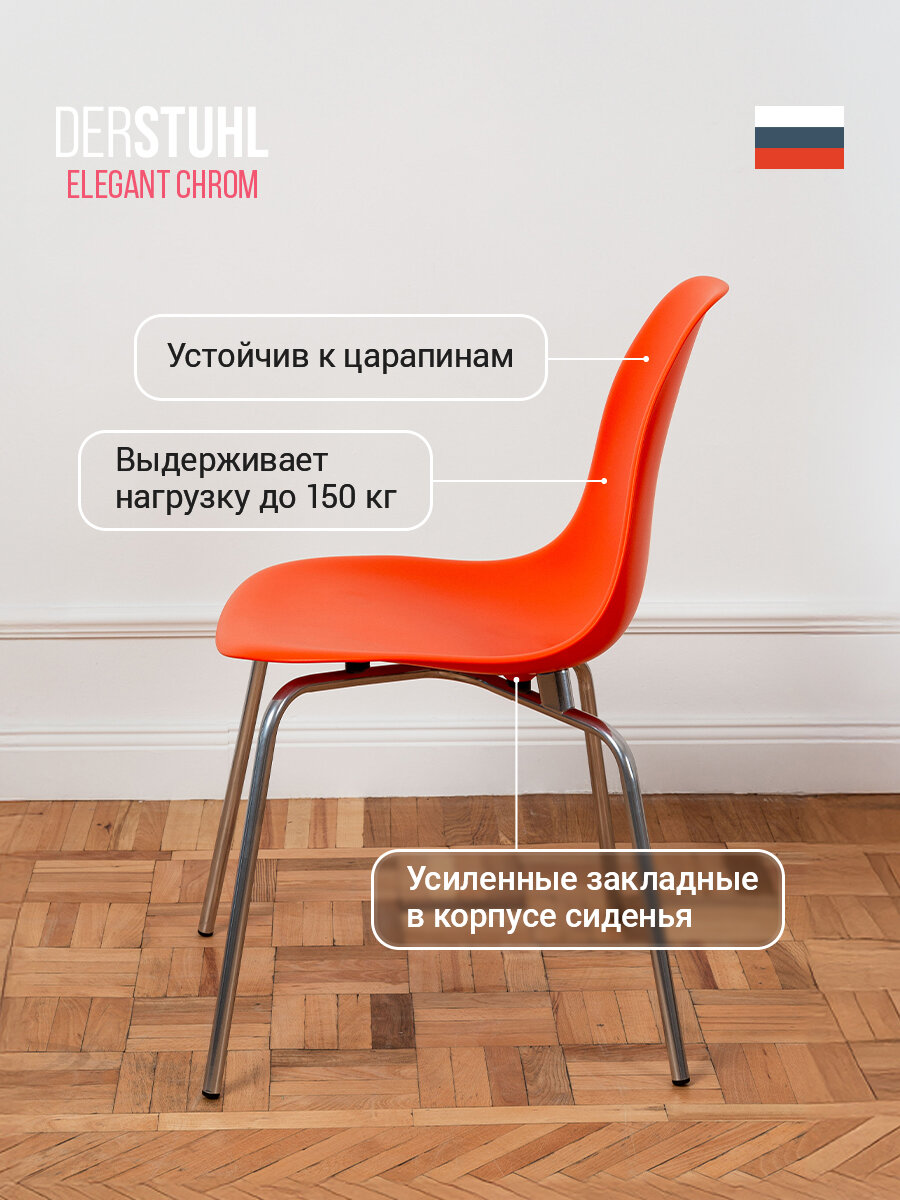 Купить Стул для кухни пластиковый со спинкой обеденный 1 шт, оранжевый с доставкой по всей России.