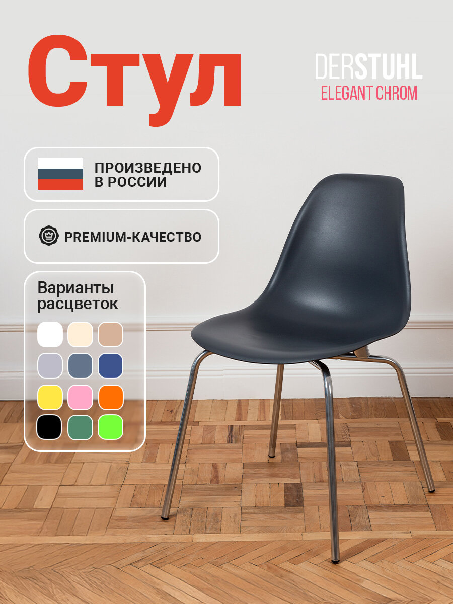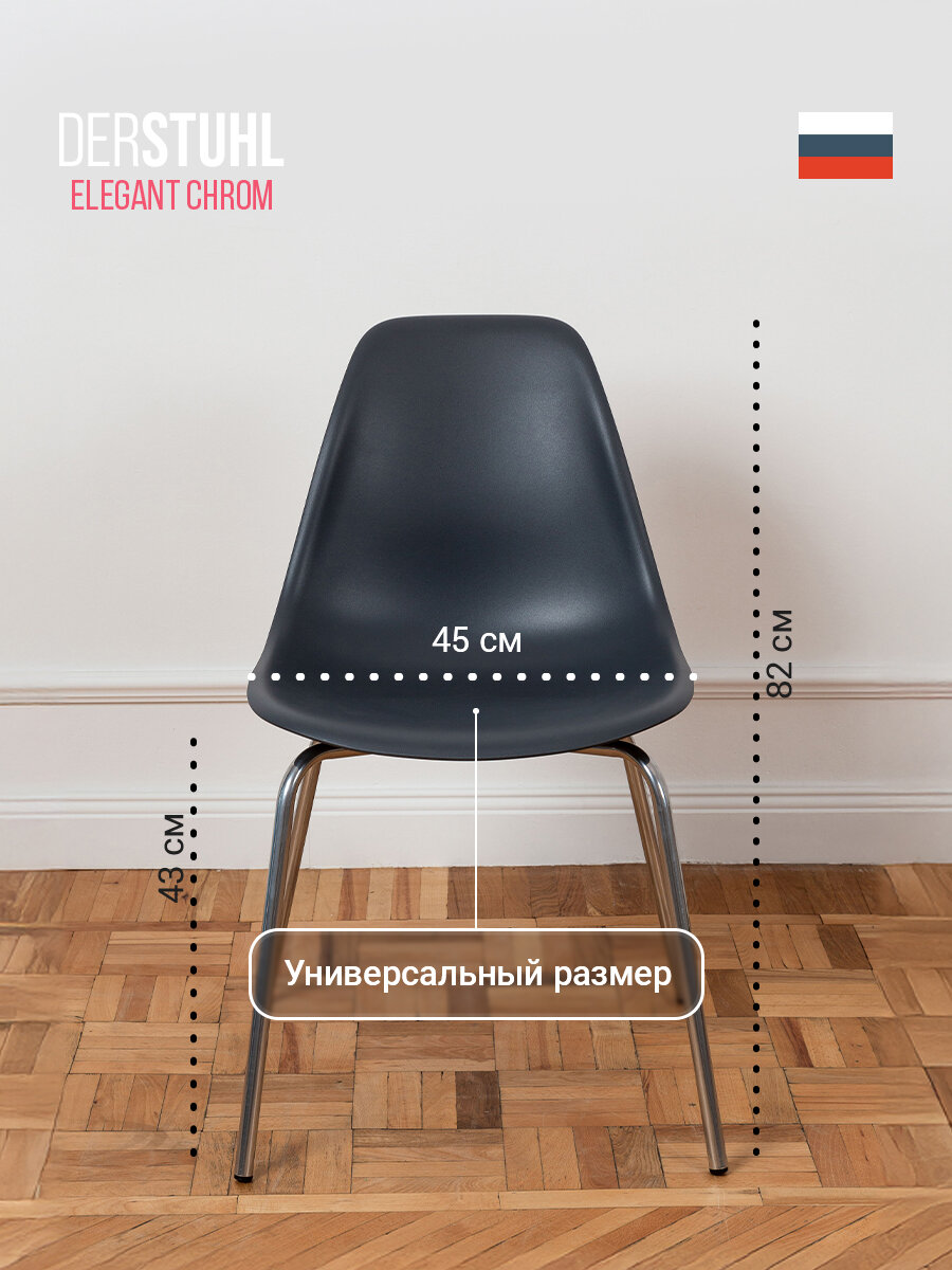 Купить Стул для кухни пластиковый со спинкой обеденный 1 шт, темно-серый с доставкой по всей России.