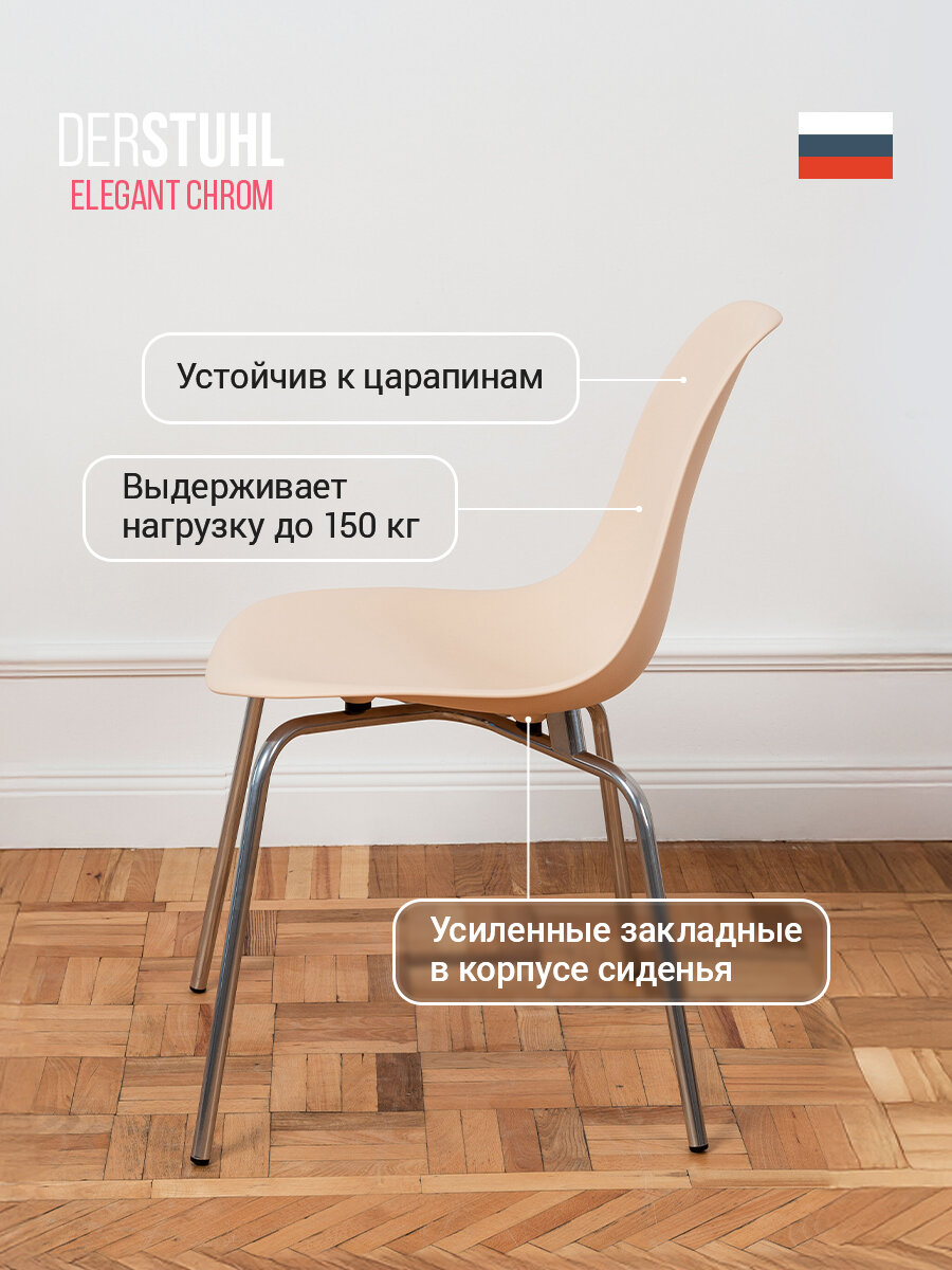 Купить Стул для кухни пластиковый со спинкой обеденный 1 шт, теплый бежевый с доставкой по всей России.
