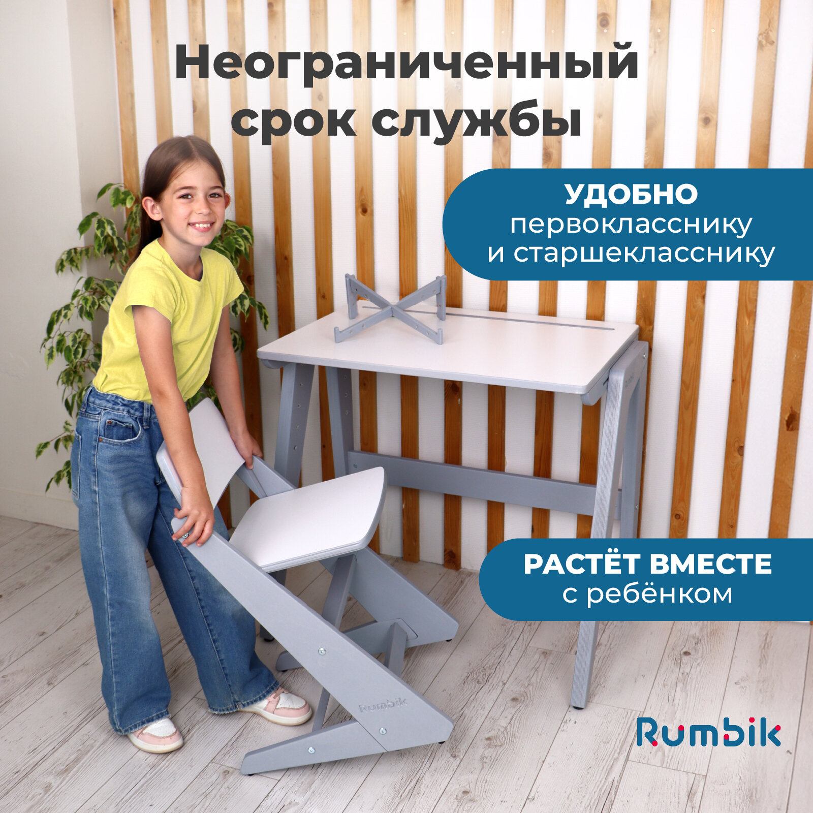 Универсальный набор мебели Rumbik Smart, в составе которого растущая парта и регулируемый стульчик, станет надежным спутником вашего ребенка в мире знаний и творчества. Это удобный комплект школьный. Стул трансформер из дерева со спинкой, полезной для осанки, и соответствующий письменный стол – это такие товары для школы, приобретая которые, вы делаете инвестицию в здоровье, комфорт и успешное будущее вашего ребенка.