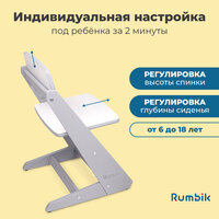 Регулируемый стул для школьника Rumbik Smart – идеальное решение для здорового развития и комфортного обучения вашего ребенка. Этот эргономичный растущий стульчик предназначен для детей от 6 до 18 лет. Он станет незаменимым элементом мебели в детской комнате или уголке школьника.