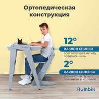 Комплект, в который входит многоуровневый стул вместе со столом той же серии Rumbik Smart, создаст дома комфортный уголок для ребенка. Это правильный ортопедический вариант для детской комнаты, ведь все параметры данной мебели отвечают государственному стандарту. Качественная ученическая мебель обеспечит условия для формирования хорошей осанки, сохранения здоровья и отличной успеваемости.