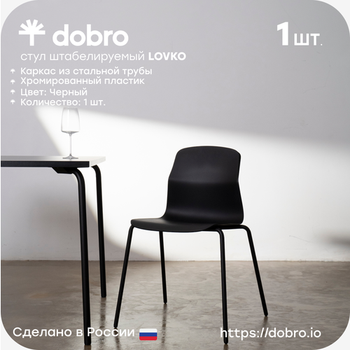 Купить Стул dobro LOVKO, кухонный, пластик, металлический каркас, штабелируемый, чёрный, 1 шт с доставкой по всей России.