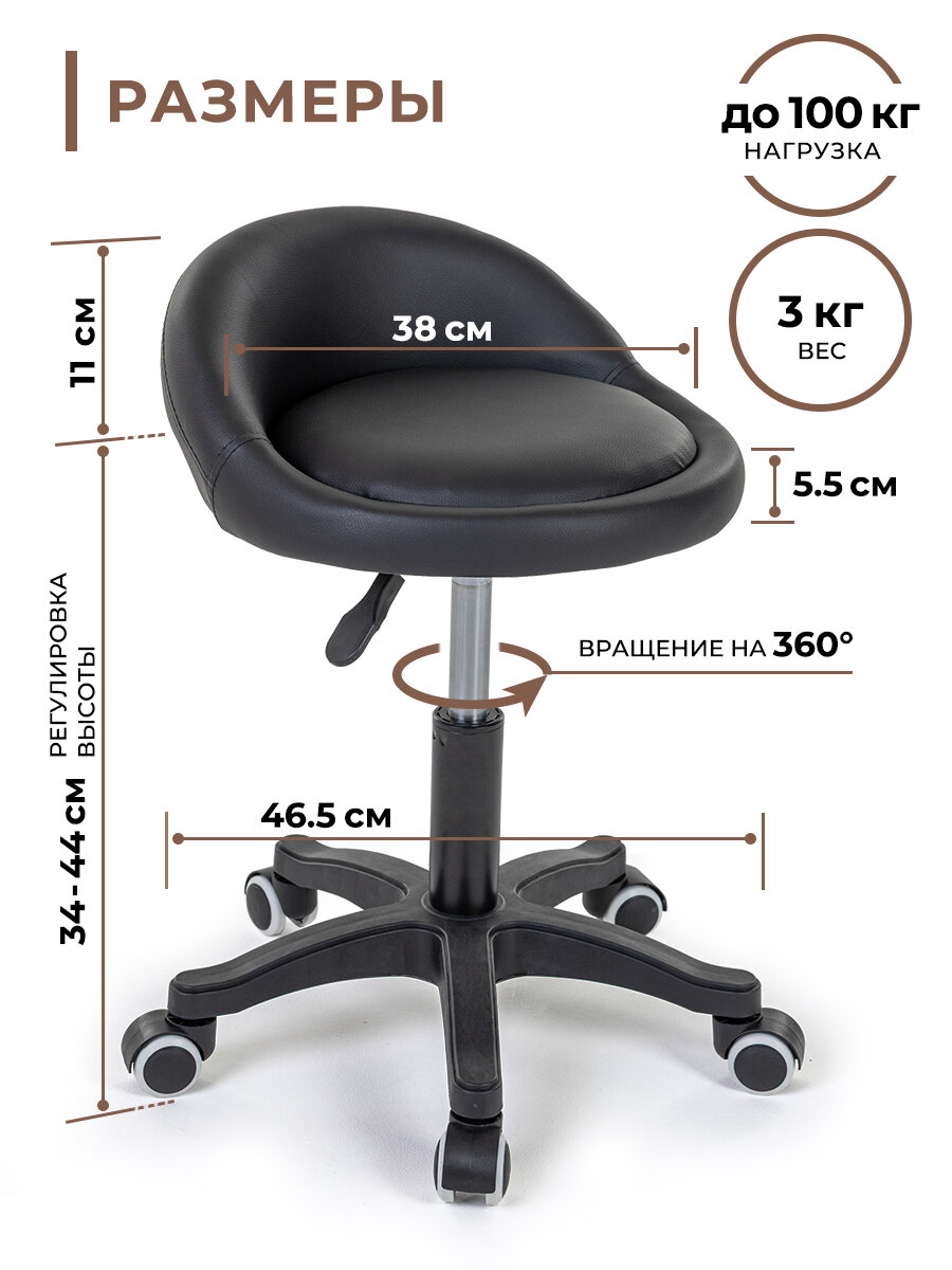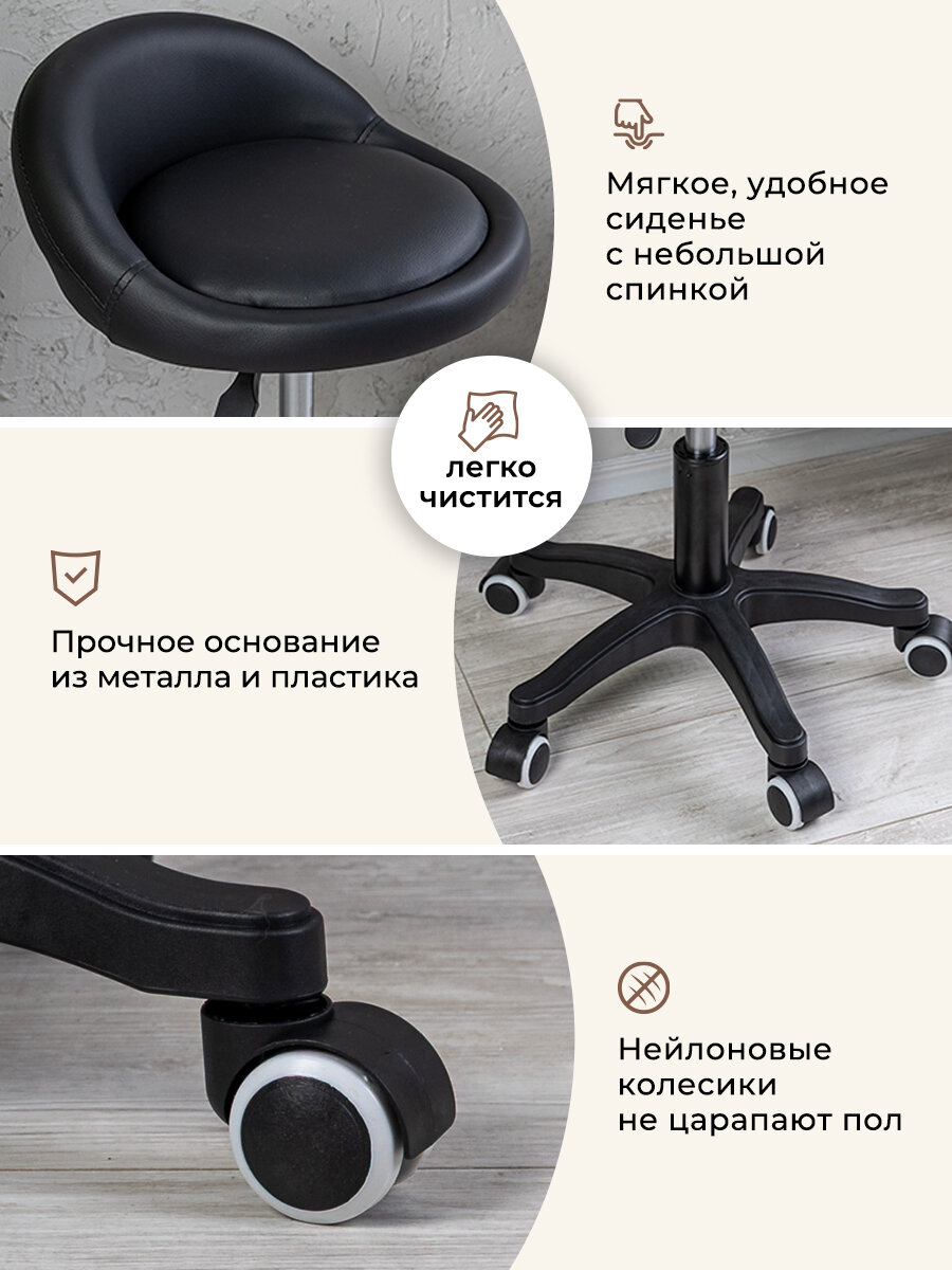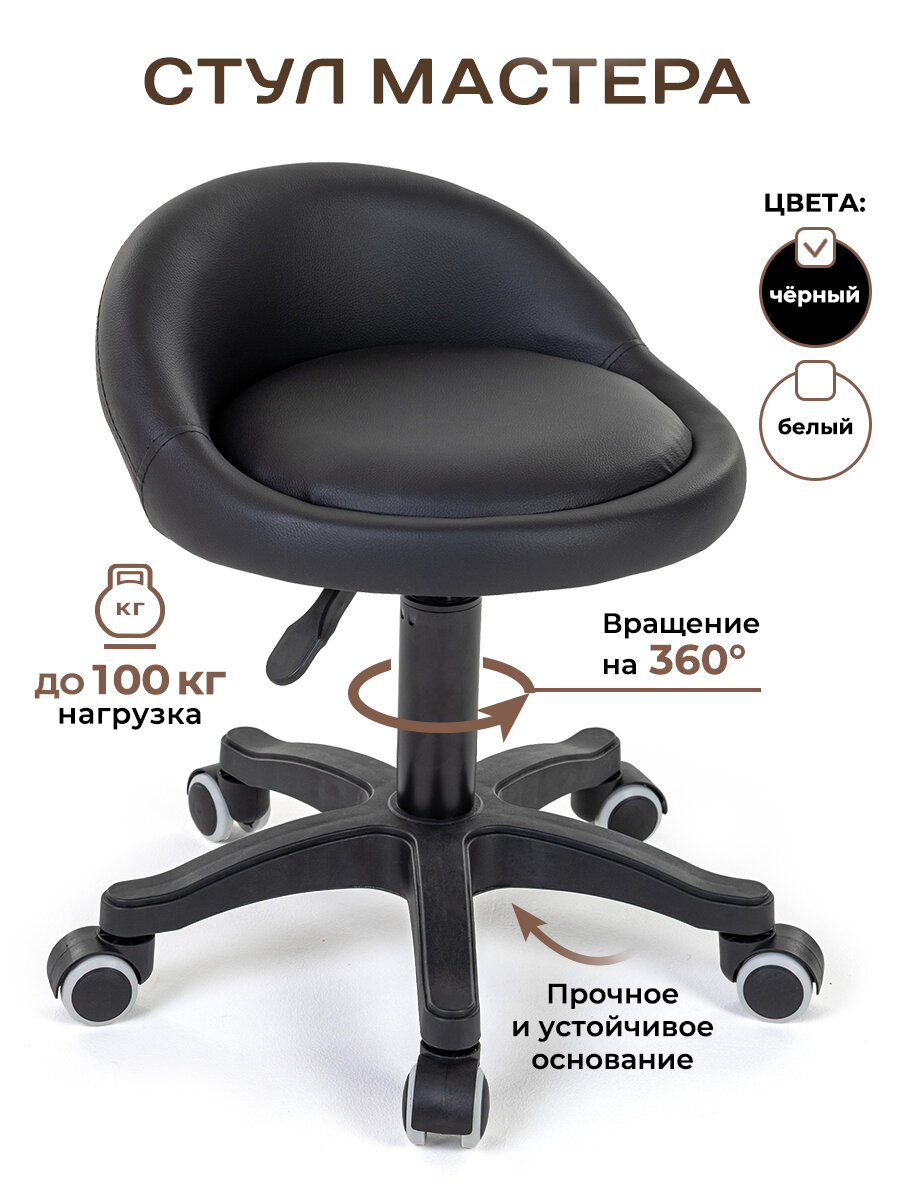 Стул Gemlux, мягкий, на колесиках, со спинкой, черный, нагрузка до 100кг