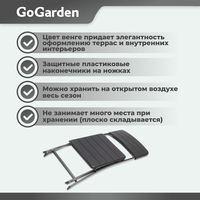 Стул складной BARI предназначен для использования на даче и дома. Сиденье и спинка из водостойкого пластика с классическим дизайном под дерево. Цвет венге придает элегантность оформлению террас и внутренних интерьеров. Прекрасно выполнена внутренняя поверхность стула. Пластиковая защита ножек исключает царапины при использовании внутри помещения. Водостойкий пластик и стальная рама с антикоррозийным покрытием позволяют оставлять стул на открытом воздухе в течение всего сезона. Компактный размер стула позволяет использовать его не только на террасах и газонах, но также на балконах и внутри небольших помещенийДополните комплект стульев BARI столом PULA арт.50371 бренда GoGarden