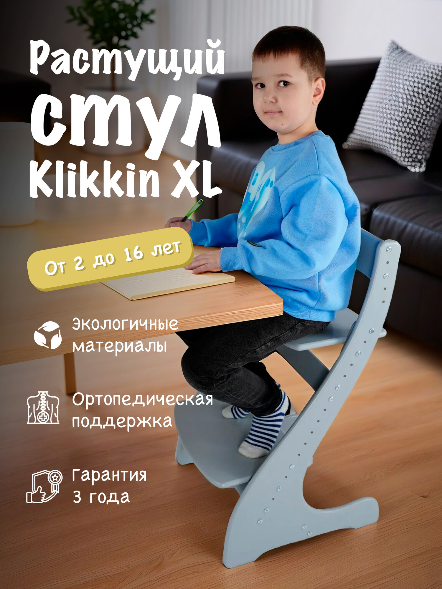 Стул Klikkin XL «Серый» растущий, ортопедический, для школьников, от 2 лет: сравнение цен, характеристики, фото, актуальное наличие и цены.