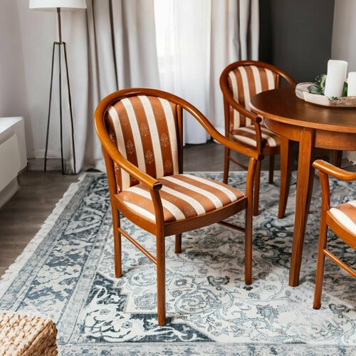 Стул с подлокотниками анна изготовлен из массива бука. Он максимально комфортный, а его мягкие формы создают настроение безмятежности и гармонии в интерьере. Подходит для любых целей и помещений - может быть и в гостиной, детской, в спальне перед туалетным столиком, либо в кабинете. Стул подойдёт даже любителям фен Шуя, поскольку в нём нет ни одного прямого или острого внешнего угла. Подлокотники являются частью спинки, обеспечат максимально удобство. Стул с подлокотниками анна собирается по классической технологии путем склеивания деталей методом "шип-проушина", который гарантирует надежность и долговечность изделия. Под сиденьем встроены дополнительные царги, усиливающие каркас.