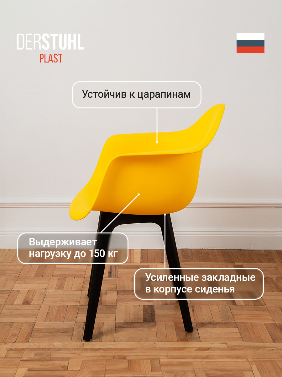 Купить Стул кресло для кухни пластиковый с подлокотниками 1 шт, лимон с доставкой по всей России.