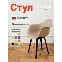 Купить Стул кресло для кухни пластиковый с подлокотниками 1 шт, темно-бежевый с доставкой по всей России.