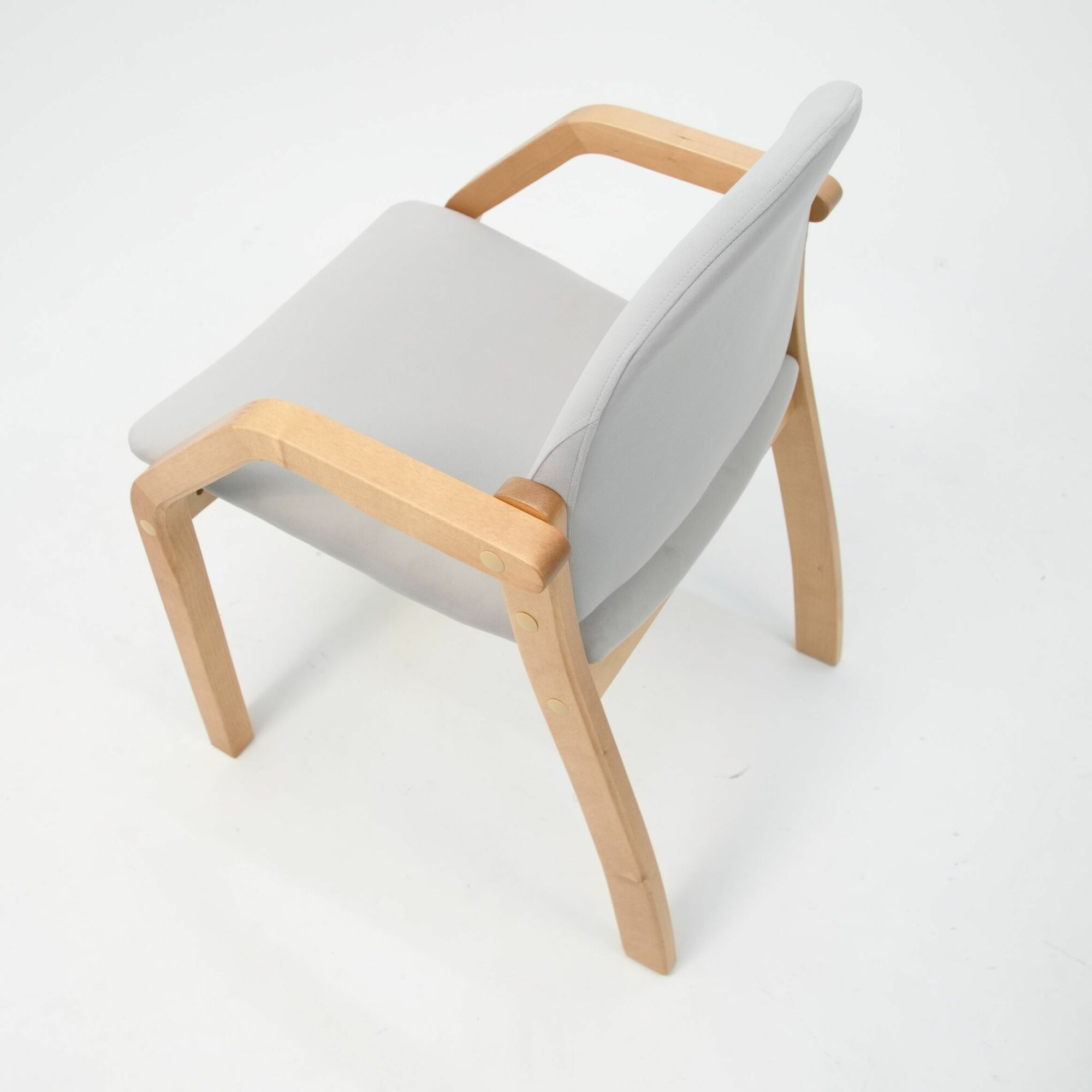 Каркас стула выполнен из массива березы натурального оттенка, сиденье и спинка – велюр серого цвета Velutto 51.