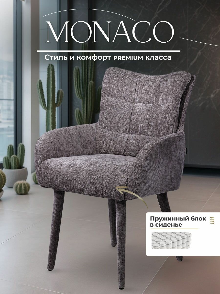 Стул кресло Монако, шенилл, мягкий для кухни, цвет серый: сравнение цен, характеристики, фото, актуальное наличие и цены.