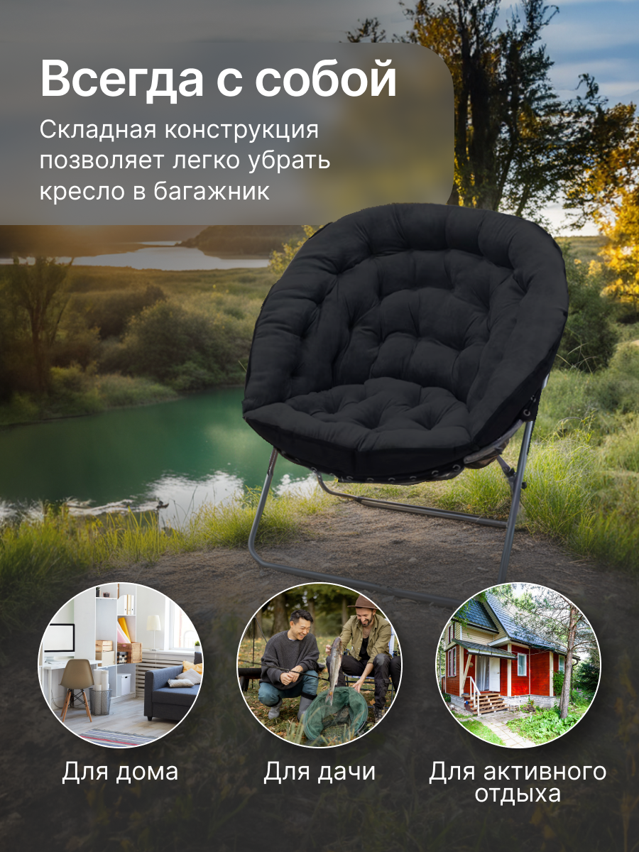 Стул-кресло складное для дома и дачи Homium Cozy с мягкой сидушкой, цвет черный: сравнение цен, характеристики, фото, актуальное наличие и цены.