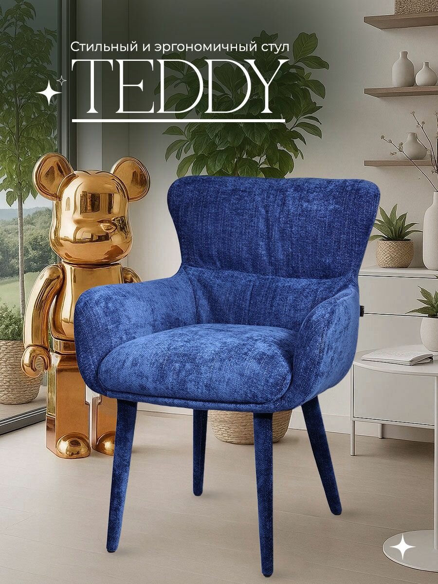 Стул кресло Тедди, шенилл, мягкий для кухни, цвет синий: сравнение цен, характеристики, фото, актуальное наличие и цены.