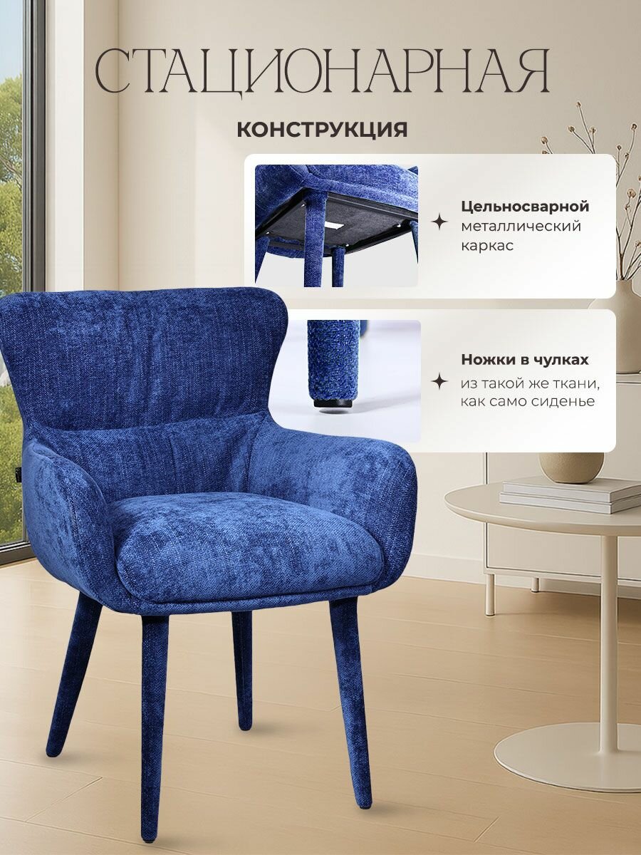 Стул кресло Тедди, шенилл, мягкий для кухни, цвет синий