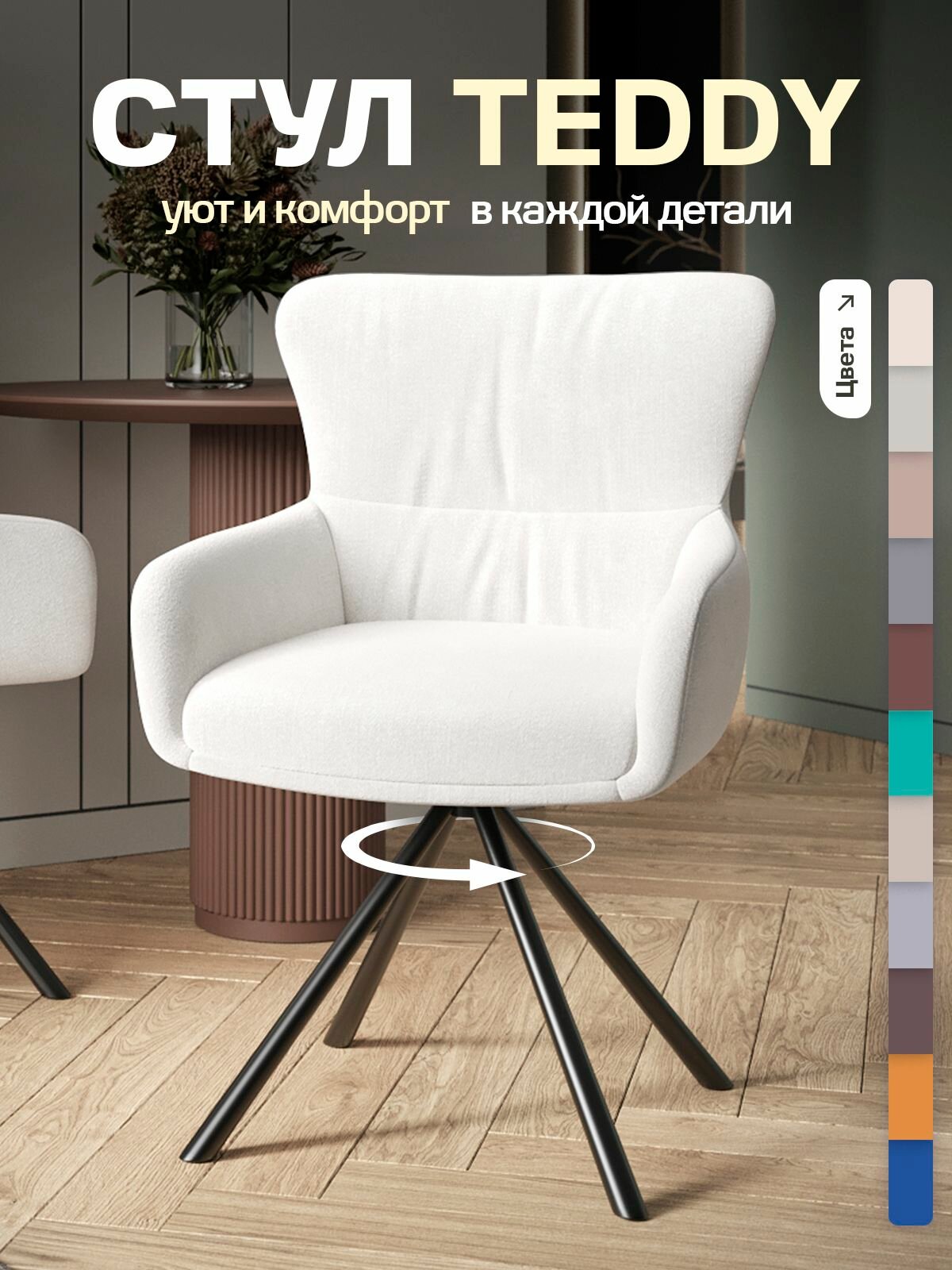 Купить Стул кресло Тедди, шенилл, с поворотным механизмом, мягкий для кухни, цвет белый с доставкой по всей России. Стул кресло Тедди, шенилл, с поворотным механизмом, мягкий для кухни, цвет белый: сравнение цен, характеристики, фото, актуальное наличие и цены.