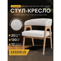 Стул кресло ZASIDELIS кайф мягкий для кухни дома и офиса светло-серый/коричневый, из велюра63x56x72 см, до 130кг