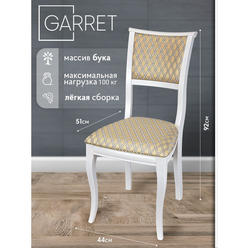 Стул кухонный деревянный GARRET Centaur, массив бука, мягкая спинка (эмаль белая, ткань Вояж): сравнение цен, характеристики, фото, актуальное наличие и цены.