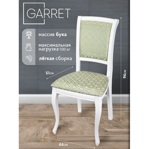 Стул кухонный деревянный GARRET Dionysus, массив бука, с мягкой спинкой (эмаль белая/Santa Izumrud): сравнение цен, характеристики, фото, актуальное наличие и цены.