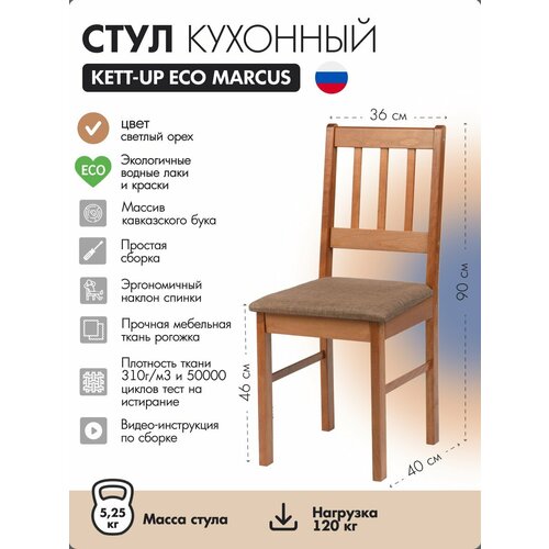 Стул обеденный KETT-UP ECO MARCUS (маркус) – это крепкий и надежный деревянный стул, выполненный из цельной древесины кавказского бука. Лаконичный дизайн, спокойные линии, сдержанные тона, отменное качество – это скандинавская линия стульев KETT-UP ECO для Вашего дома. Комфортная эргономичная спинка с наклоном для удобной посадки – одно из преимуществ нашего уютного и недорого стула. Мебельщики-профессионалы хорошо знают, насколько хорош кавказский бук для производства мебели, а в особенности столов и стульев. Бук имеет высокую прочность, превосходящую по показателям дубовую мебель. Одно из преимуществ – это особенный природный рисунок годичных колец, отличающий особой красотой эту древесину. Для покрытия бука мы используем только натуральные лаки и краски на водной основе. Благодаря качественной обработке каркаса поверхность стула приятная и гладкая на ощупь.