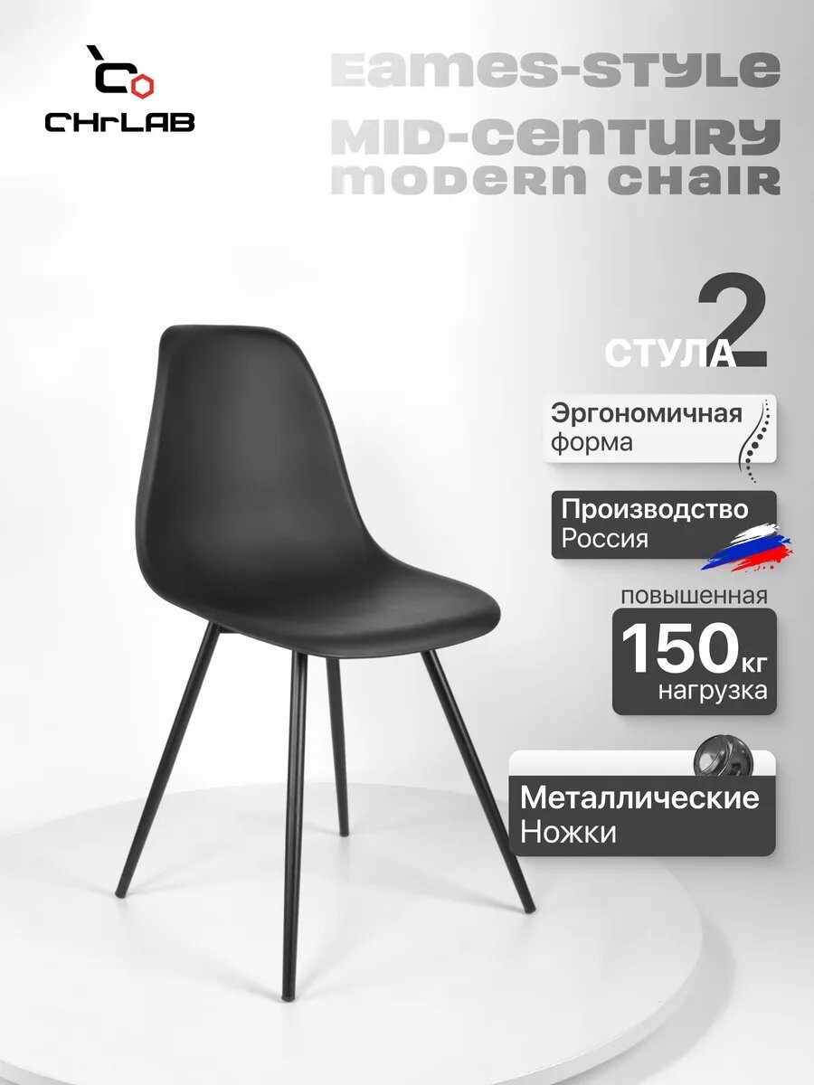 Стул на кухню CHRLAB EAMES PLAST, металл/пластик, овальный, чёрный, 4 шт