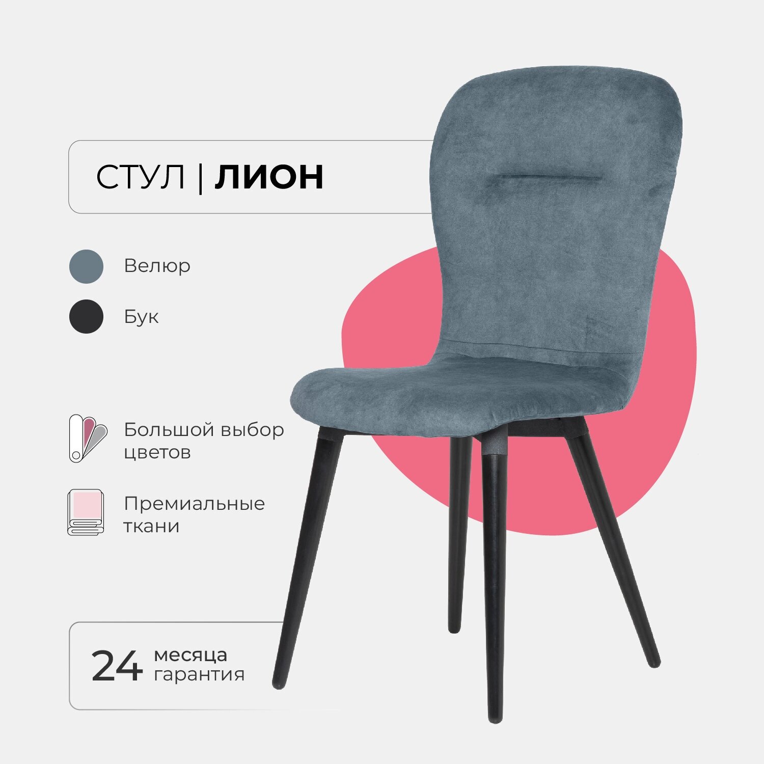 Стул кухонный Лион для кухни гостиной дома дачи кафе ресторанов. Велюр свинцово-синий, массив дерева — бук/черный лак: сравнение цен, характеристики, фото, актуальное наличие и цены.