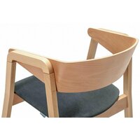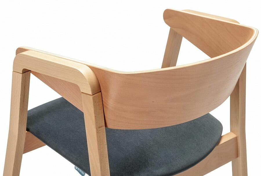Элегантный симбиоз классики и современности с изогнутой спинкой, совмещающей в себе функции подлокотника, это кресло показывает возможности использования технологий работы с гнутоклееным шпоном в сочетании с хорошей эргономикой, современным видением дизайна и классическим основанием каркаса из цельного дерева.