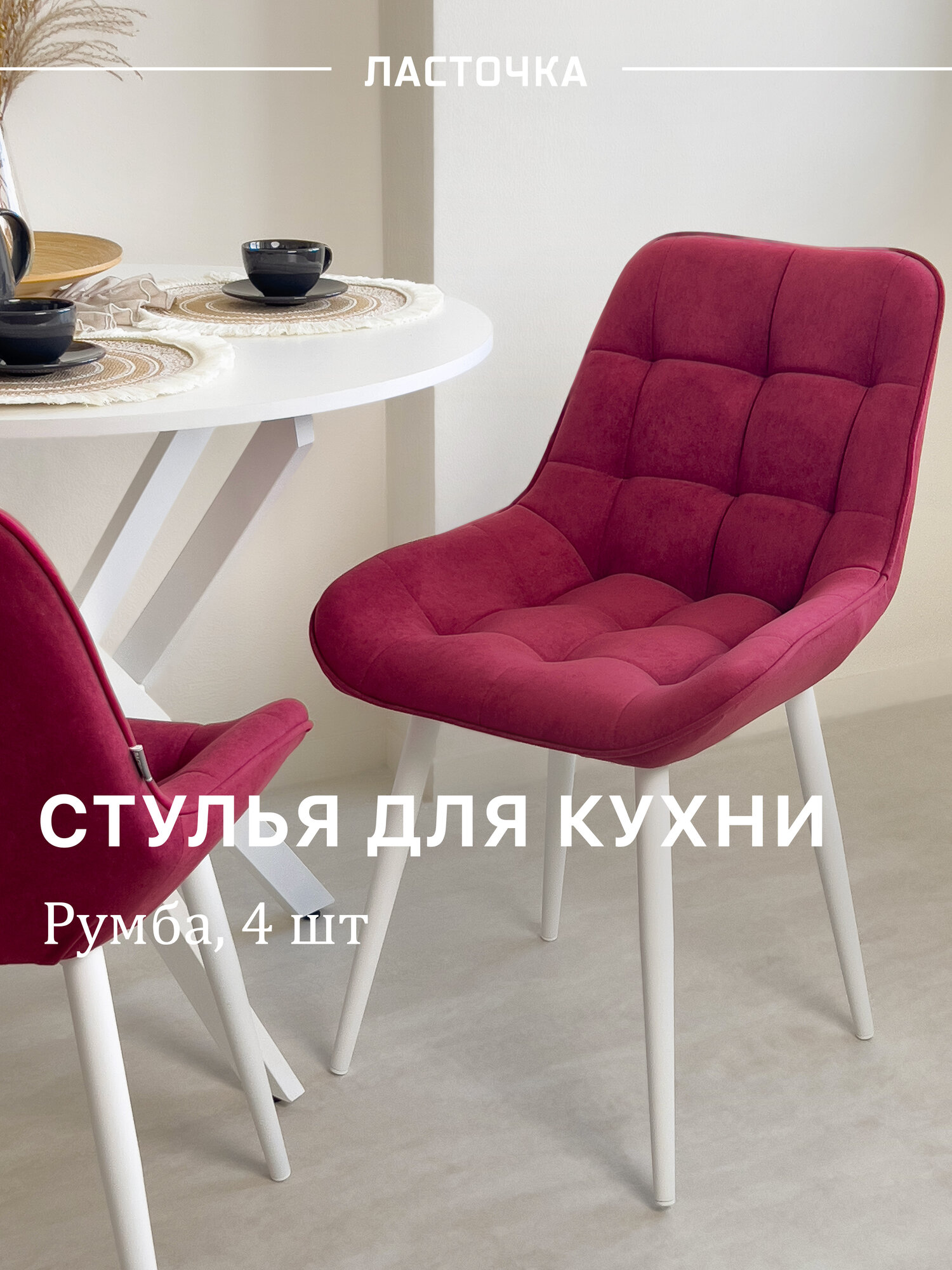 Стул кухонный «Румба», мягкий, Бордовый с белыми опорами, комплект 4 шт: сравнение цен, характеристики, фото, актуальное наличие и цены.