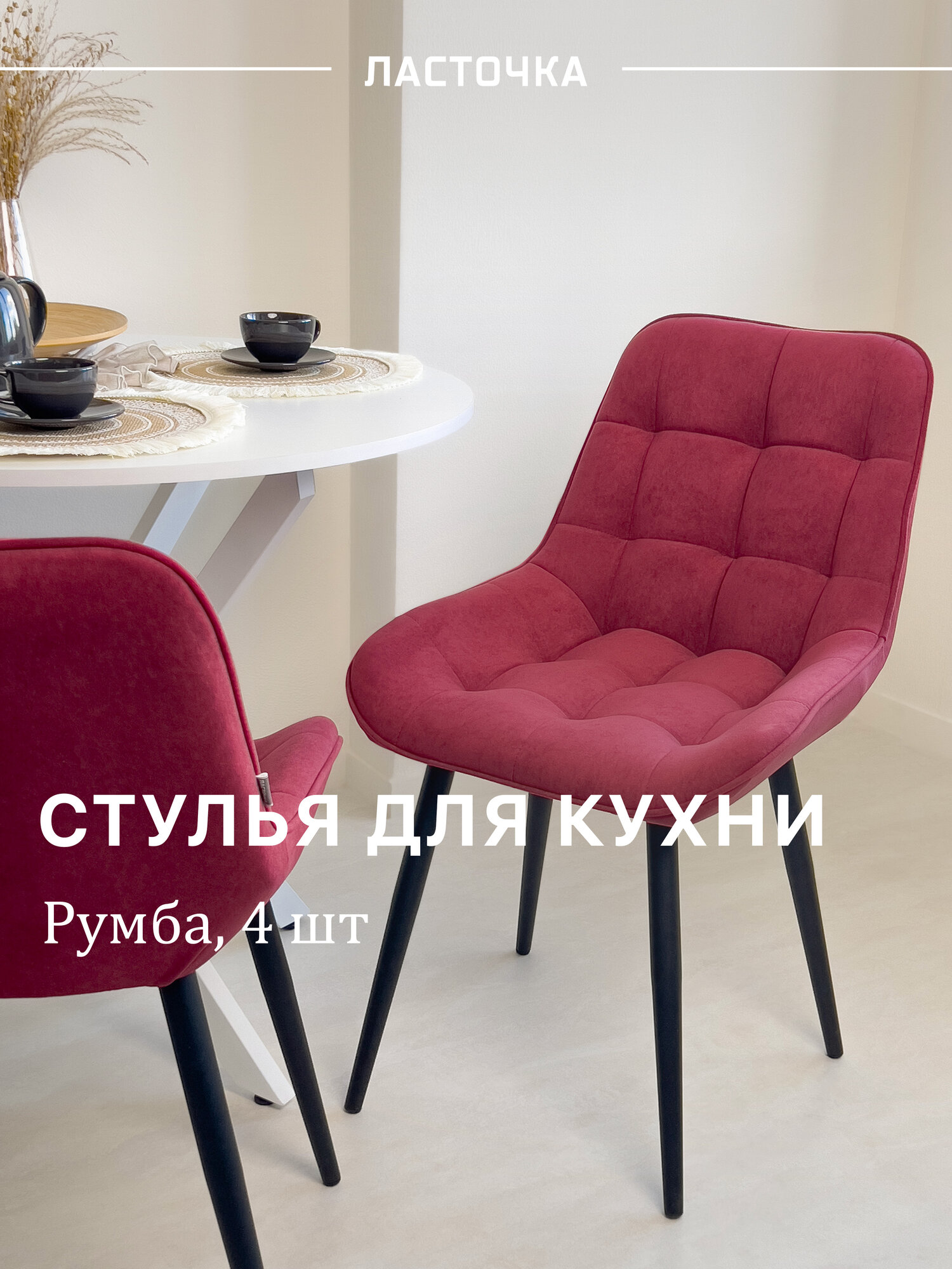 Стул кухонный «Румба», мягкий, Бордовый с черными опорами, комплект 4 шт: сравнение цен, характеристики, фото, актуальное наличие и цены.