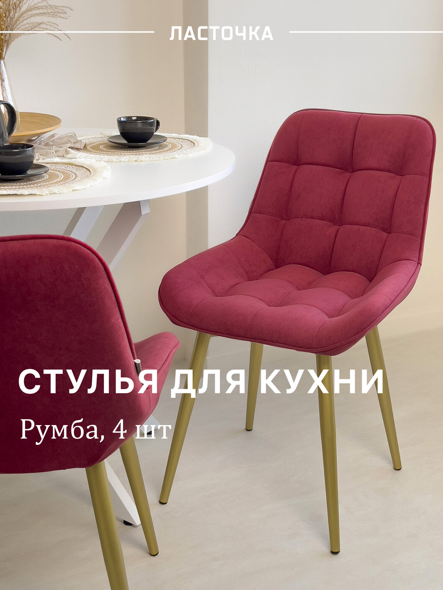 Стул кухонный «Румба», мягкий, Бордовый с золотыми опорами, комплект 4 шт: сравнение цен, характеристики, фото, актуальное наличие и цены.