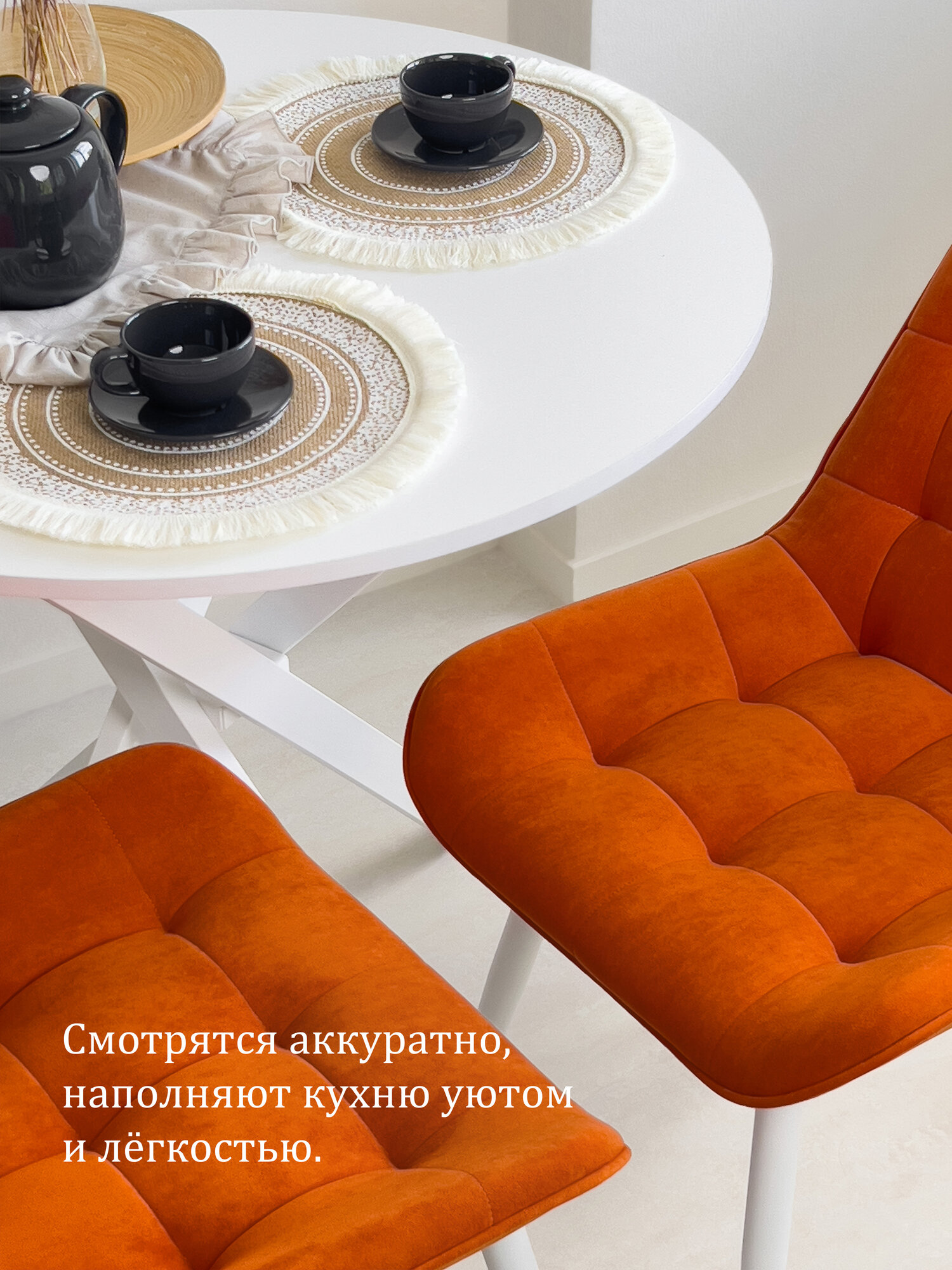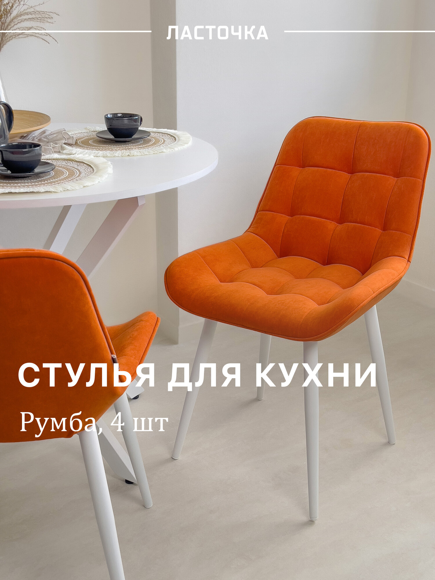 Стул кухонный «Румба», мягкий, Оранжевый с белыми опорами , комплект 4 шт: сравнение цен, характеристики, фото, актуальное наличие и цены.