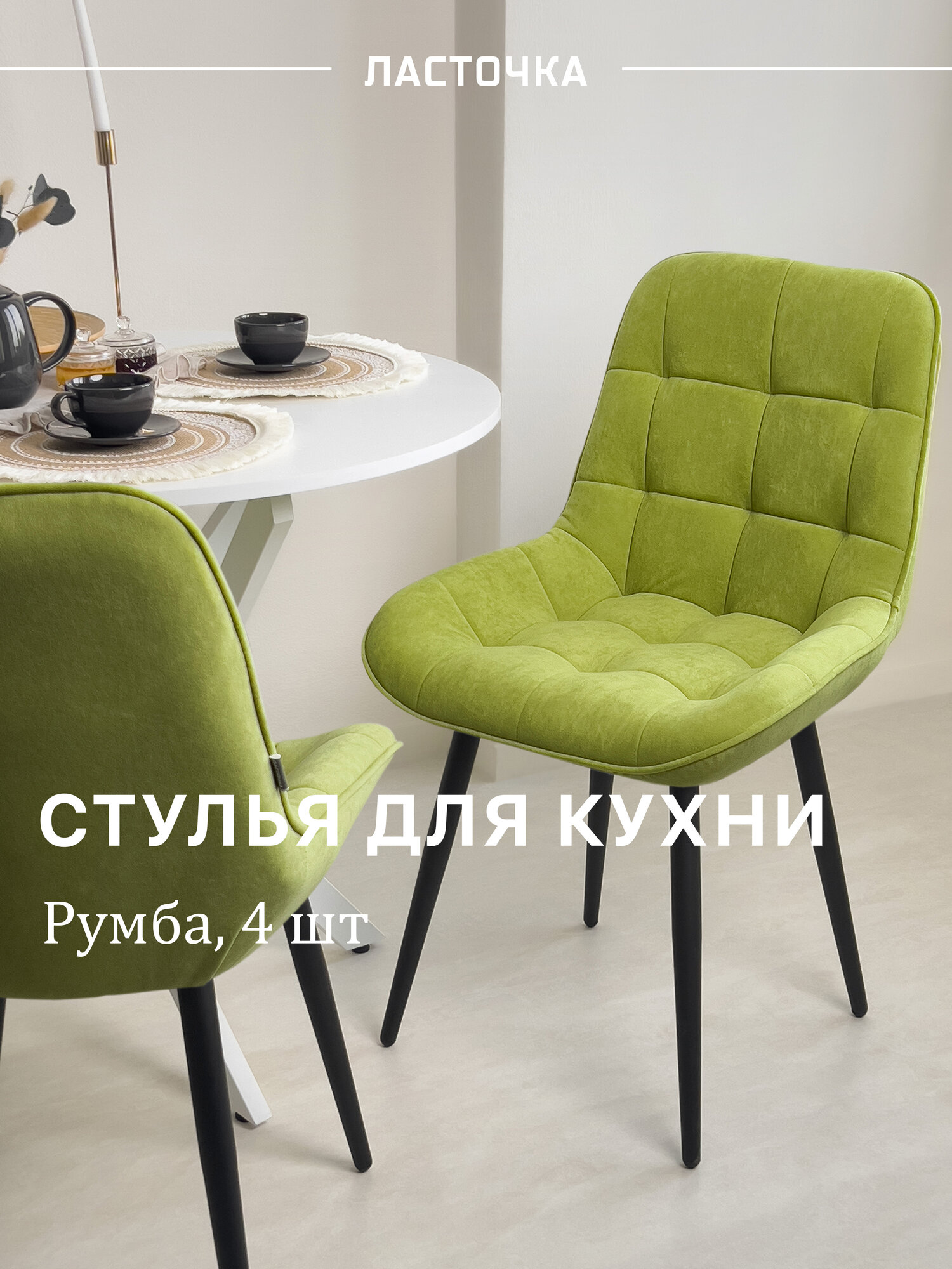 Стул кухонный «Румба», мягкий, Салатовый с черными опорами, комплект 4 шт: сравнение цен, характеристики, фото, актуальное наличие и цены.