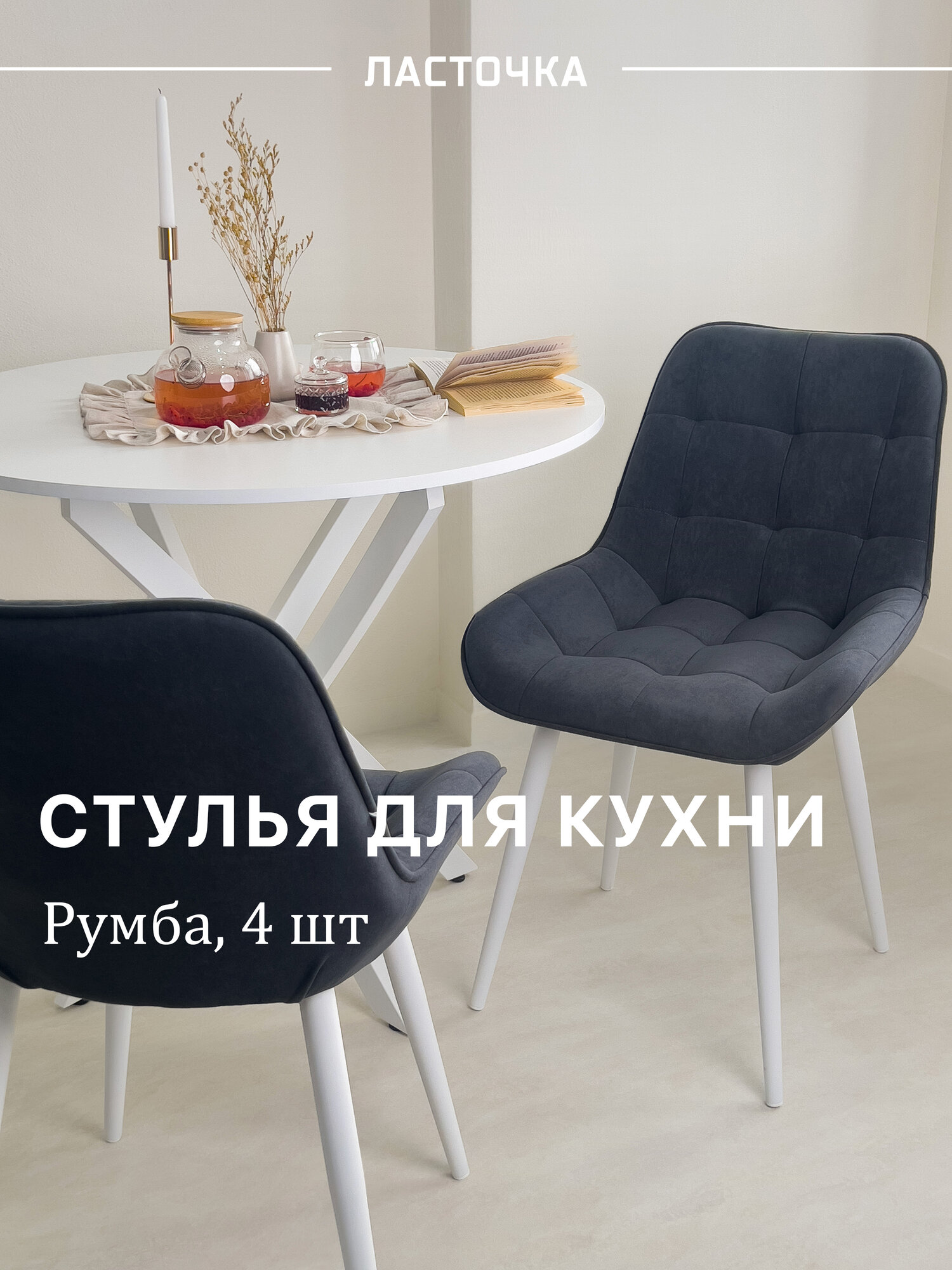 Стул кухонный «Румба», мягкий, Темно-серый с белыми опорами, комплект 4 шт: сравнение цен, характеристики, фото, актуальное наличие и цены.