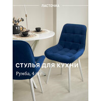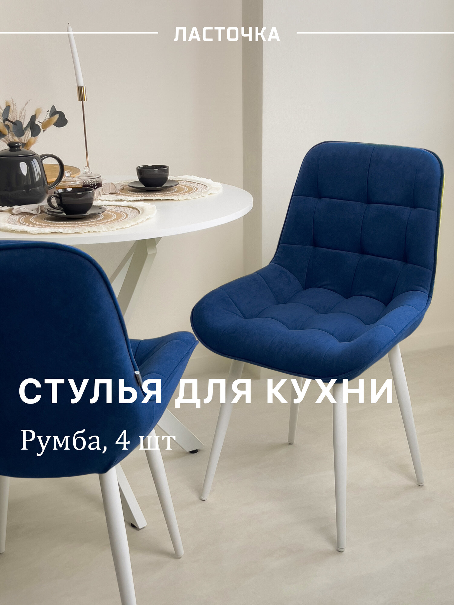 Стул кухонный «Румба», мягкий, Ярко синий с белыми опорами, комплект 4 шт: сравнение цен, характеристики, фото, актуальное наличие и цены.