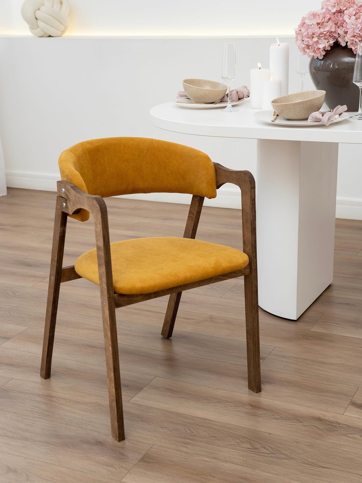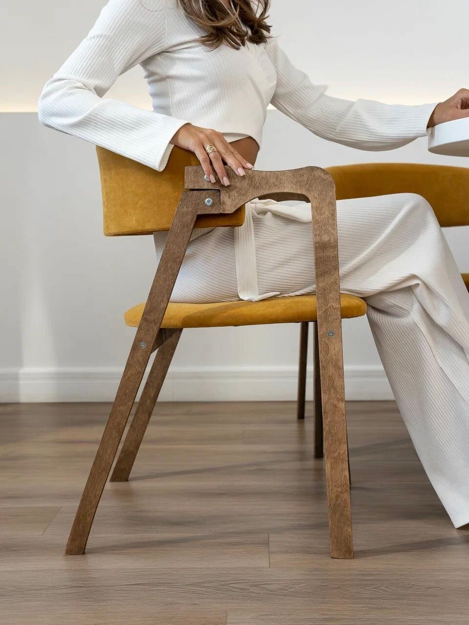 Стул кухонный со спинкой мягкий деревянный, обеденное кресло с подлокотниками, 1 шт, антивандальный велюр, Горчичный: сравнение цен, характеристики, фото, актуальное наличие и цены.