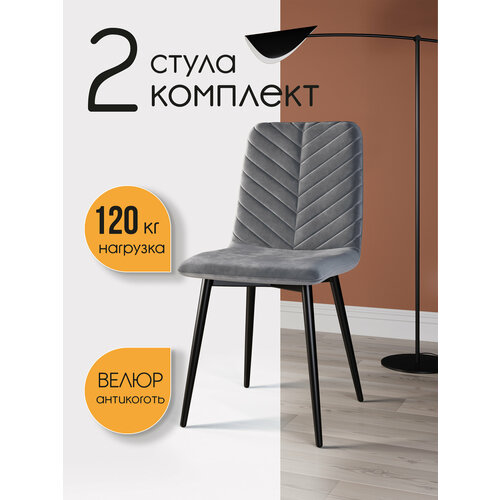 Купить СтолБери Стул кухонный StulStol Шелл, велюр, черное металлическое основание, максимальная нагрузка 120кг, 2шт с доставкой по всей России.