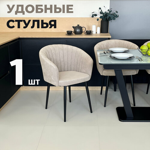 Стул кухонный «Версаль», мягкий, Бежевый с черными опорами, комплект 1 шт: сравнение цен, характеристики, фото, актуальное наличие и цены.