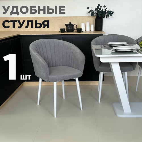 Стул кухонный «Версаль», мягкий, Серый с белыми опорами, комплект 1 шт: сравнение цен, характеристики, фото, актуальное наличие и цены.