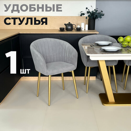 Стул кухонный «Версаль», мягкий, Светло-серый с золотыми опорами, комплект 1 шт: сравнение цен, характеристики, фото, актуальное наличие и цены.